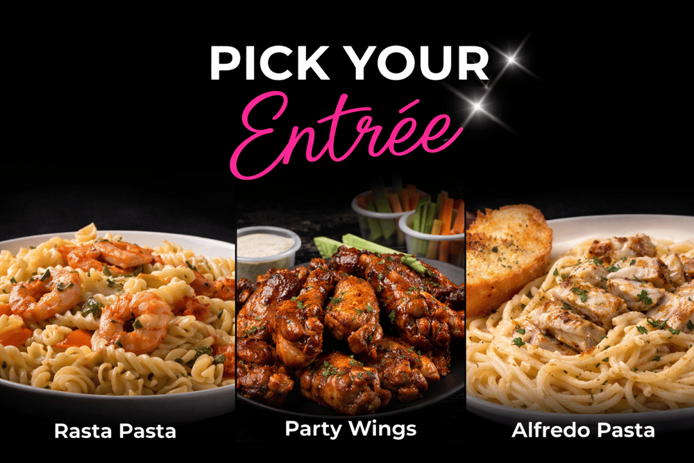 Each entrée serves 15-20 guests. Premium proteins must be added separately. After you pick your 2 Entrée’s your total in the cart will be $300, please pick your side and your protien for your pasta separately if you’d like one!