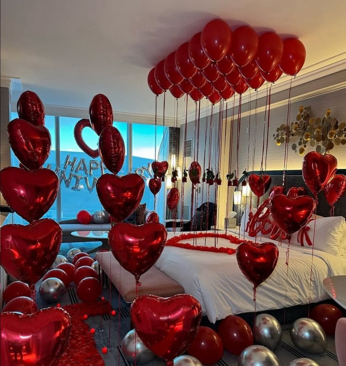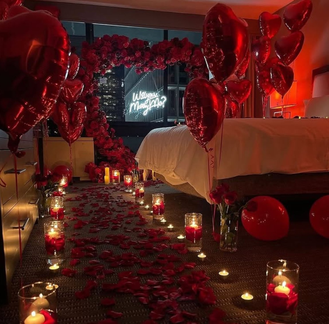 - Full luxury room décor (balloons,roses, candles)